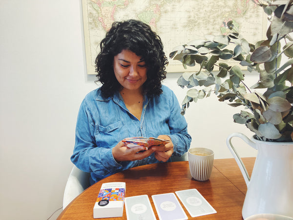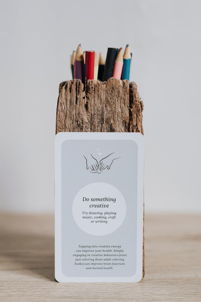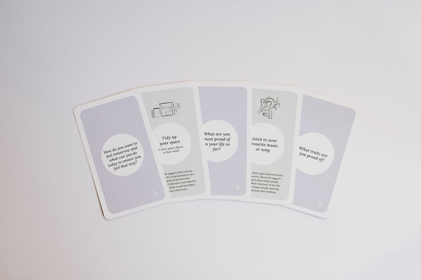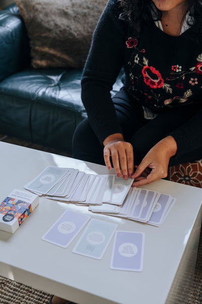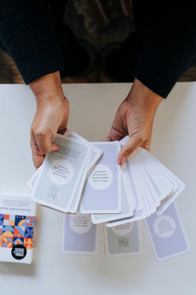 Our deck of cards with conversation starters or journal question prompts and activities to do is the perfect tool for you! Each deck has unique prompts and activities to help you engage in meaningful conversations and practice self-care.